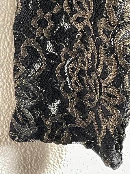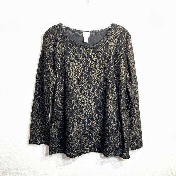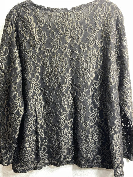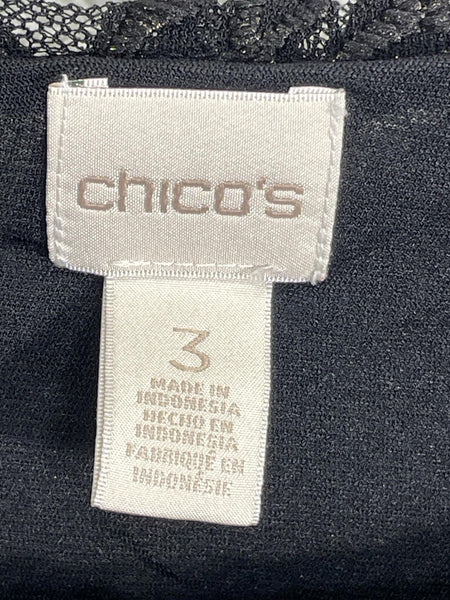 Chicos 3 Shirt Long Sleeve Black Mesh with Gold Embroidered Design Women's XL