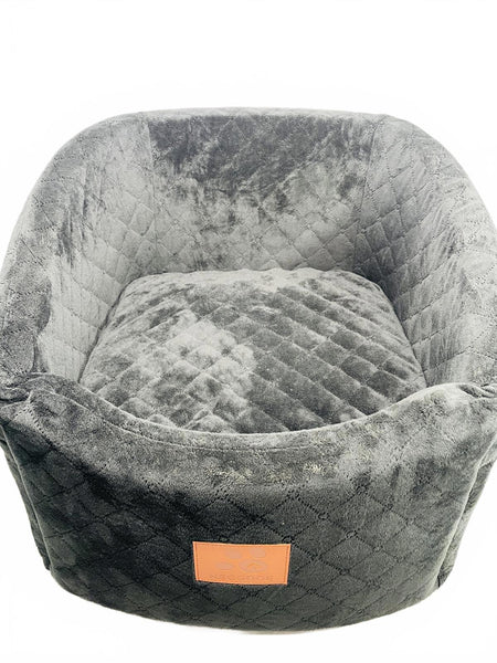 Comfortable and cozy pet bed made from soft quilted fabric. Features a plush cushioning for added comfort and support. Stylish black color with a durable design suitable for small to medium pets. Easy to clean and maintain, perfect for indoor use.