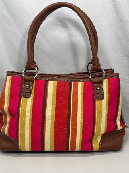 Merona Purse Multi Color Pink Gold Tan Shoulder Straps 3 Large Pockets