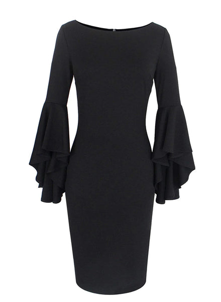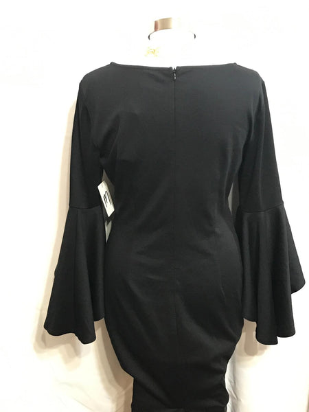 NWT! VFShow Dress Black Form Fitting 3/4 Ruffle Bell Sleeve Ladies M