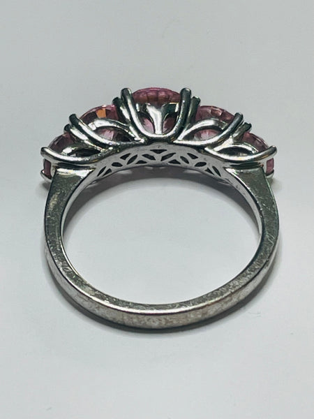 Sterling Silver 925 RING with 5 Pink Stones SIZE 4.5