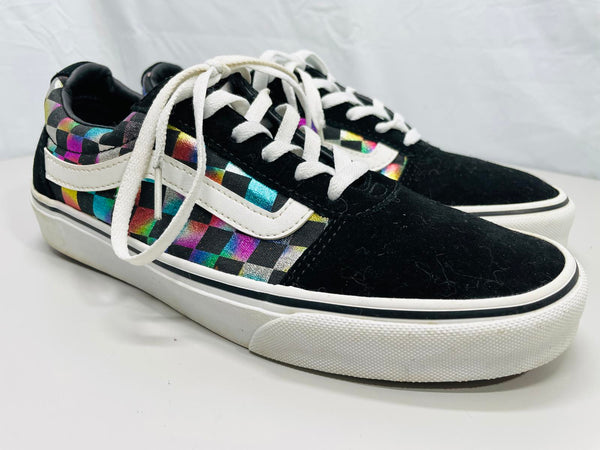 Vans Ward Iridescent Rainbow Checkerboard Shoes with suede & canvas uppers Wmns 9