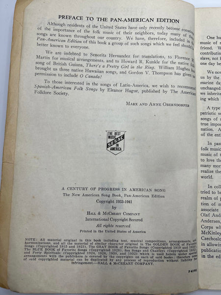 Vintage 1941 The New American Song Book - Pan-American Edition