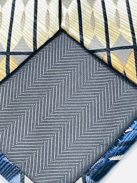 Vintage Geometric Pattern Silk Neck Tie in Blue, Gold, and Cream
